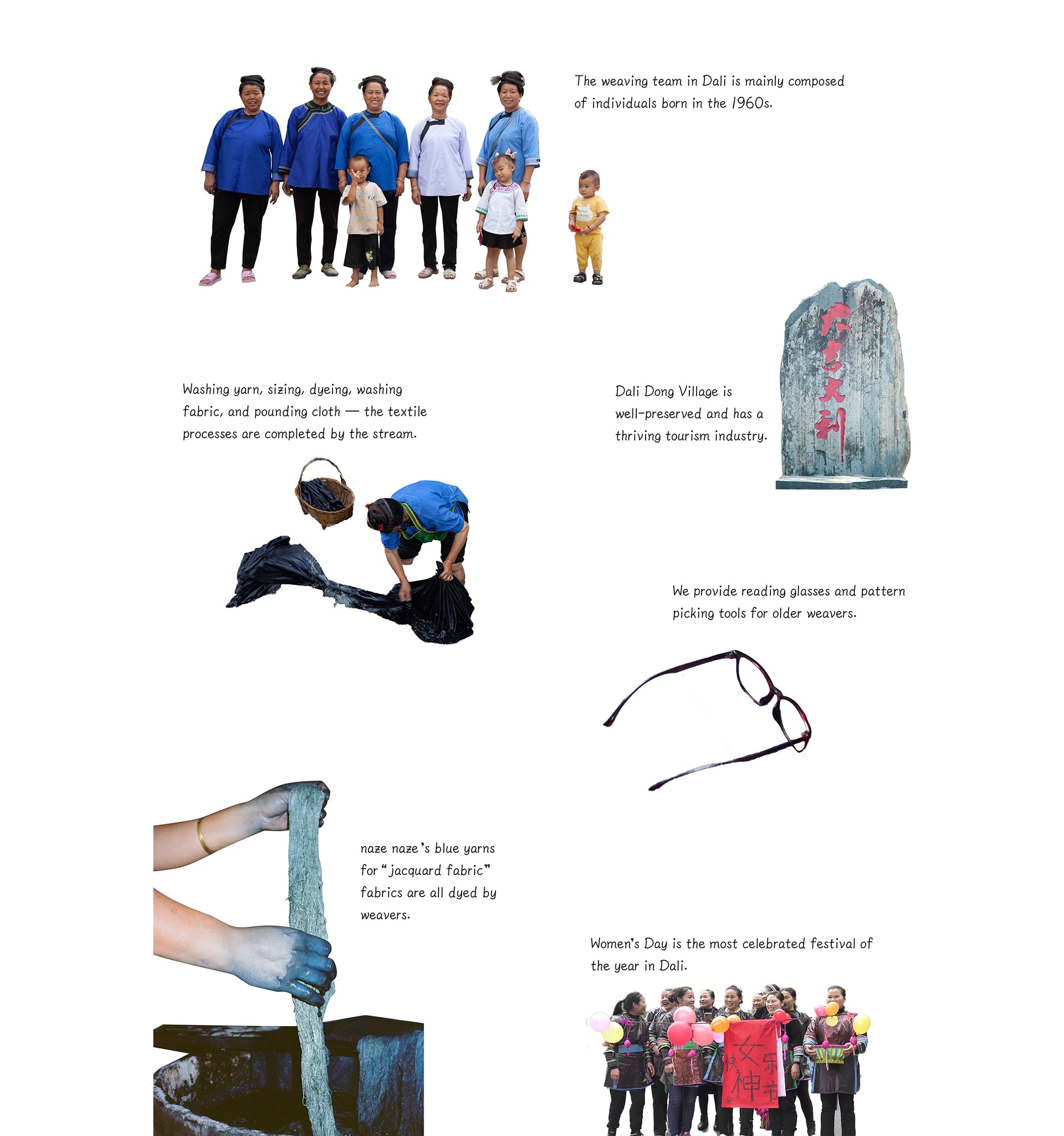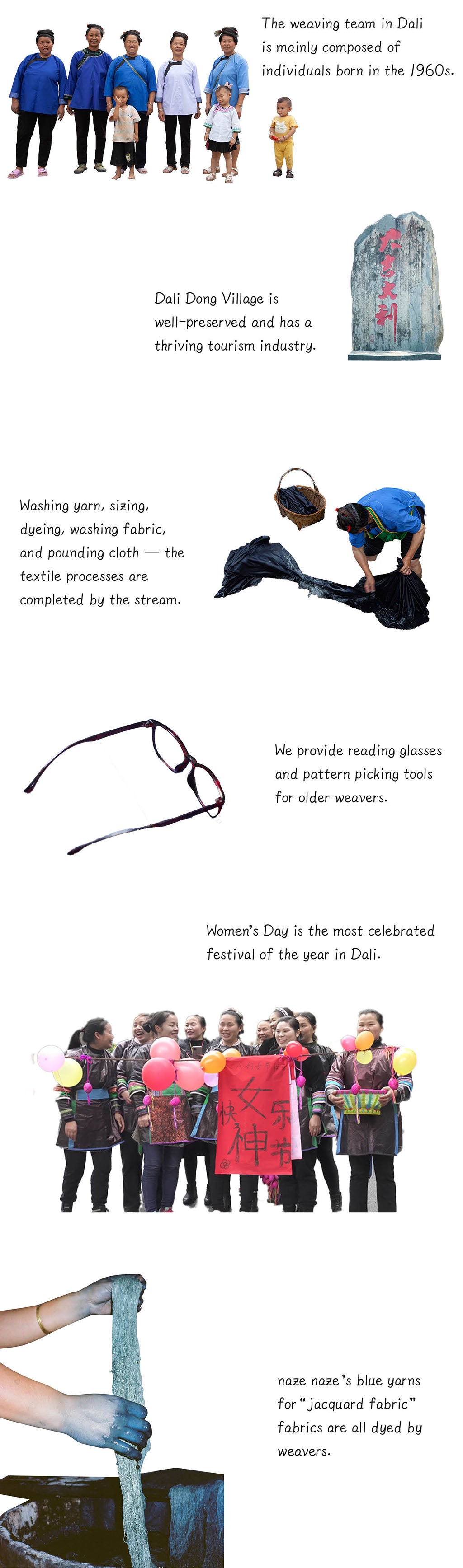 Dali project started in 2019, in collaboration with Dali women’s cooperative Dousa. After several field trips to research and gain insight into the rich local weaving traditions, the naze naze Dali collection launches in 2023, brings traditional “jacquard fabric” (a type of cross stitching) fabrics into modern life.