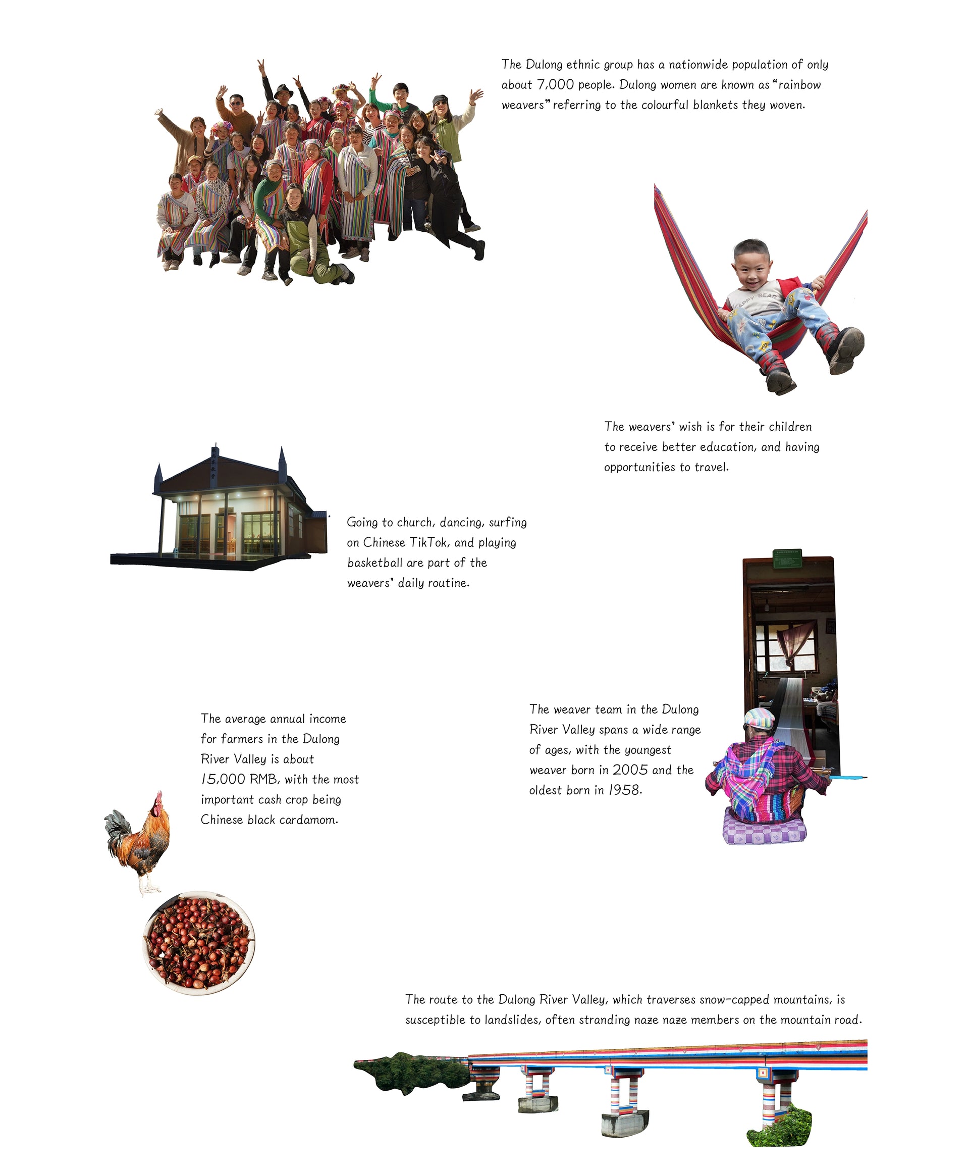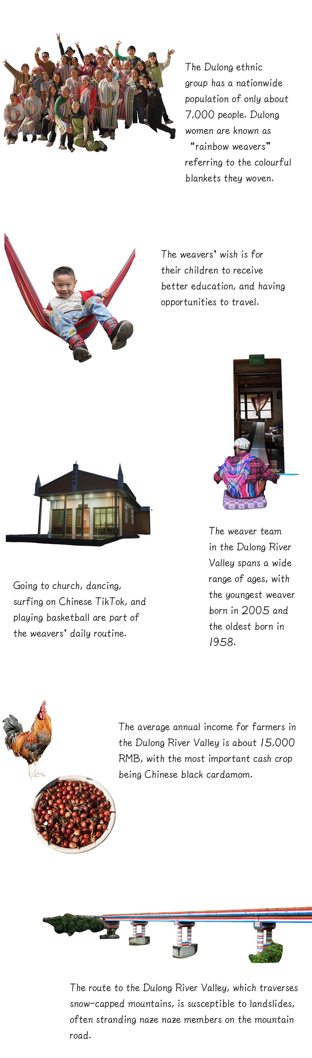 Dulong River Valley is in Gongshan Dulong and Nu Autonomous County, Yunnan Province, bordering China and Myanmar. It has been the traditional dwelling place of the Dulong people. naze naze started the weaving project in 2015, continuously launching the Dulong River collection every year since then.